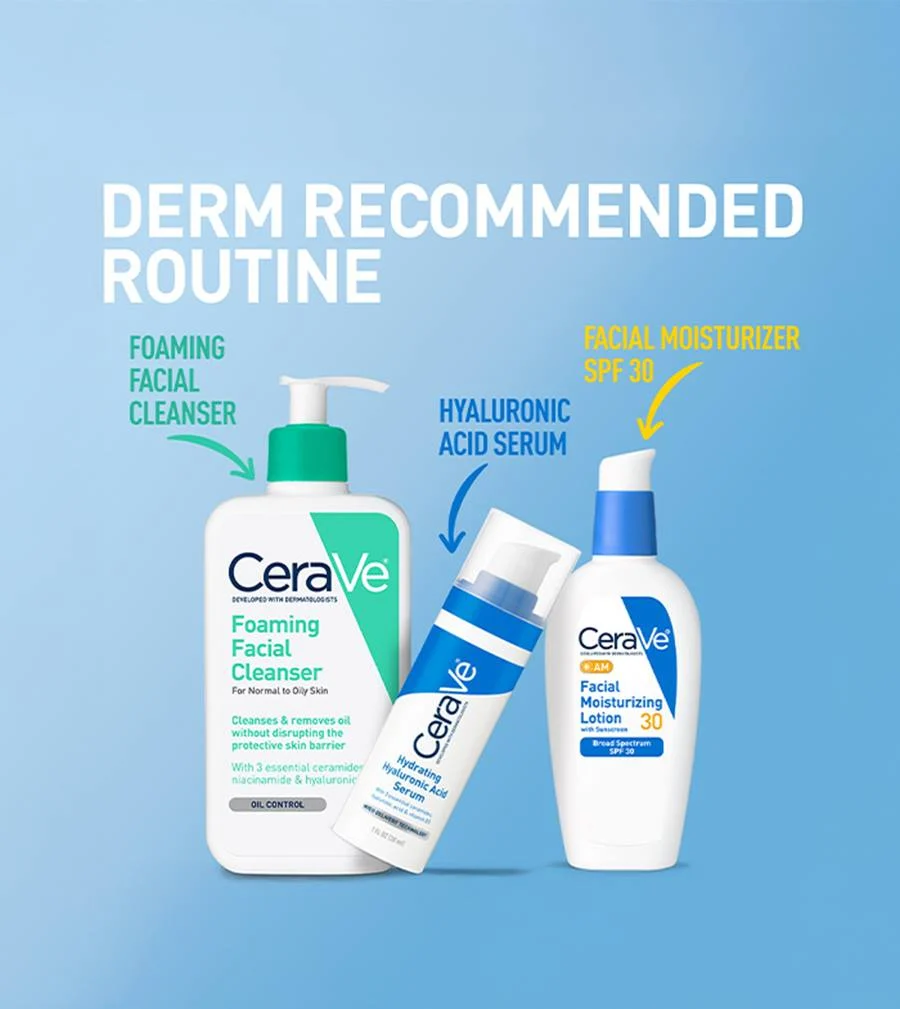 CeraVe AM Facial Moisturizer is a morning skincare multitasker that moisturizes and nourishes your skin while helping to absorb and reflect the sun’s damaging UVA and UVB rays. It’s formulated with three essential ceramides, along with hydrating hyaluronic acid, soothing niacinamide, Invisible Zinc™ Technology (microfine zinc oxide), and our MVE technology—which releases a steady stream of moisturizing ingredients for continuous, all-day hydration.