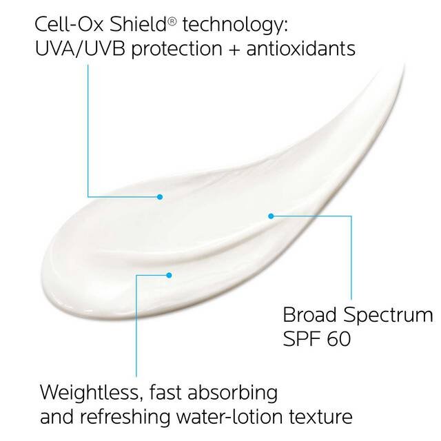 This lightweight sunscreen lotion transforms into a unique & refreshing, water-like lotion texture upon contact with skin. It is formulated with Cell-Ox Shield® technology: broad spectrum UVA/UVB protection with antioxidants.