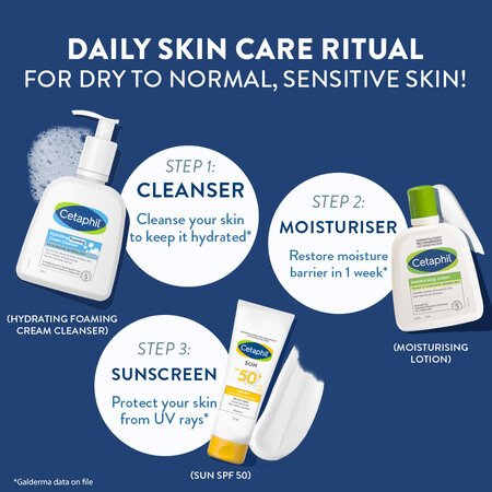 Cetaphil rich cream-to-foam cleanser is clinically proven to effectively remove pore-clogging dirt, oil and makeup without stripping or drying out the skin.  It maintains skin’s natural protective barrier and skin’s pH to leave skin feeling hydrated after cleansing.