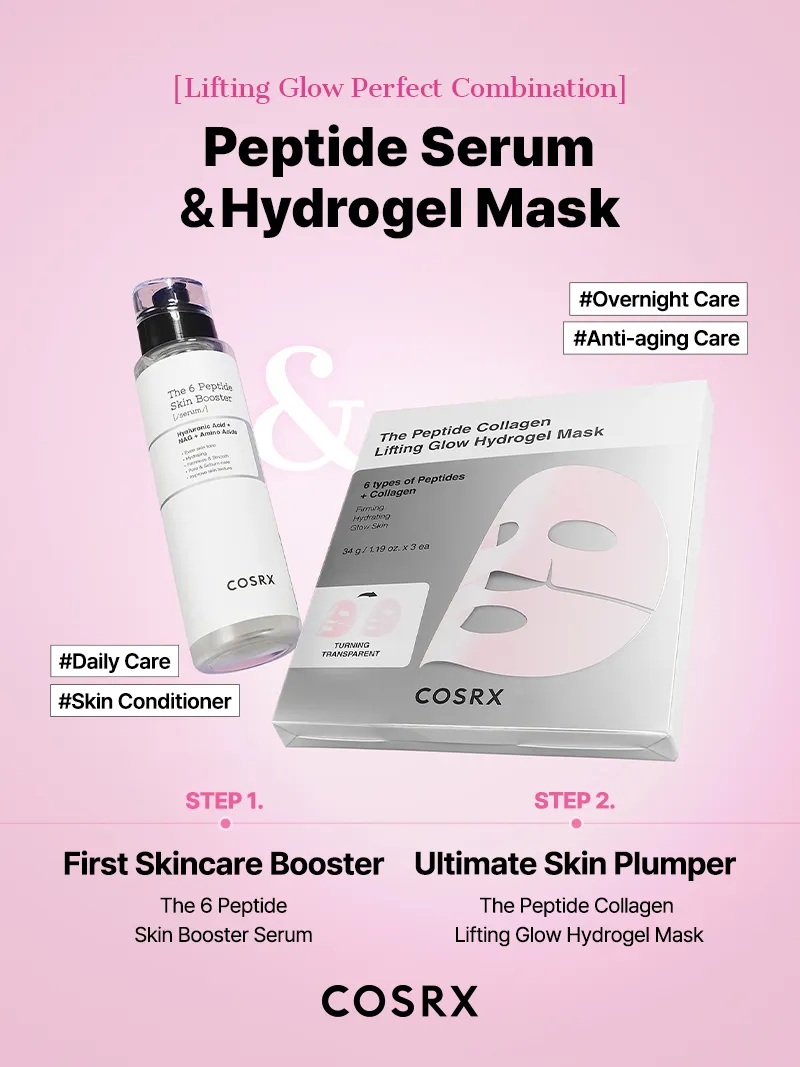 This hydrogel mask, formulated with 6 types of Peptides and Low-Molecular-Weight Collagen, turns transparent as it delivers active ingredients onto the skin.
