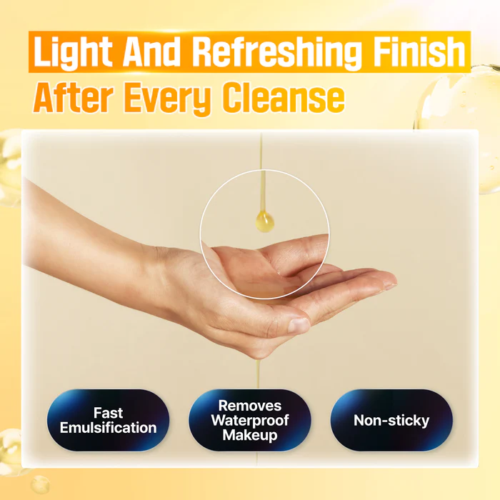 [CLEANSING OIL] Rich cleansing oil made from natural oils and tone-evening ingredients, effectively cleanses the skin of impurities, waterproof makeup, blackheads, and excess oil, leaving a clean, refreshed and evened out skin. The added herb-lemon fragrance provides deep relaxation and helps destress.