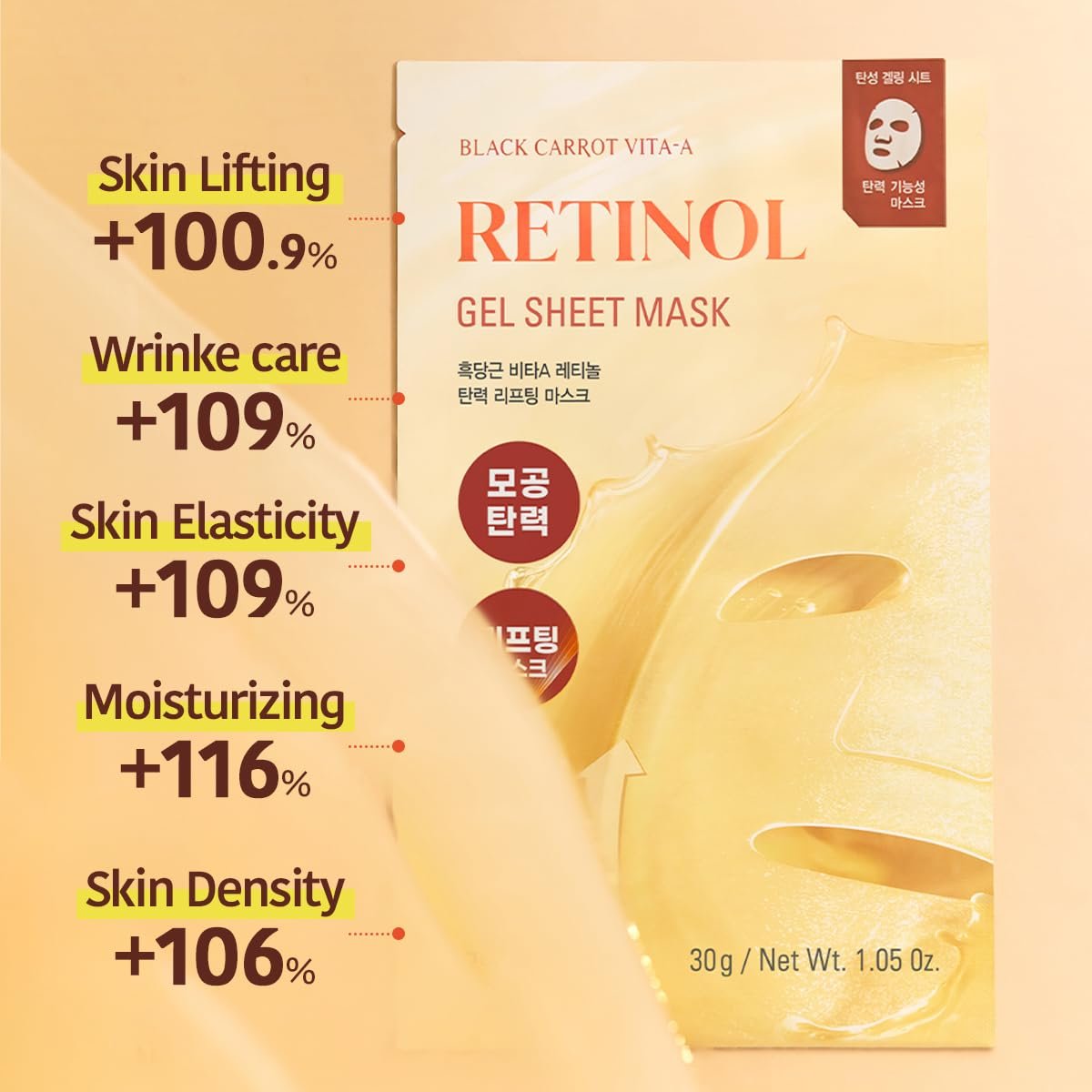[Retinol & Black Carrot Synergy for Radiant Skin] This mask combines liposome-encapsulated retinol with antioxidant-rich black carrot extract to enhance skin clarity and elasticity. The ingredients work together to boost cell turnover while nourishing and protecting the skin barrier.
