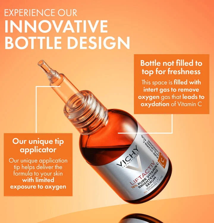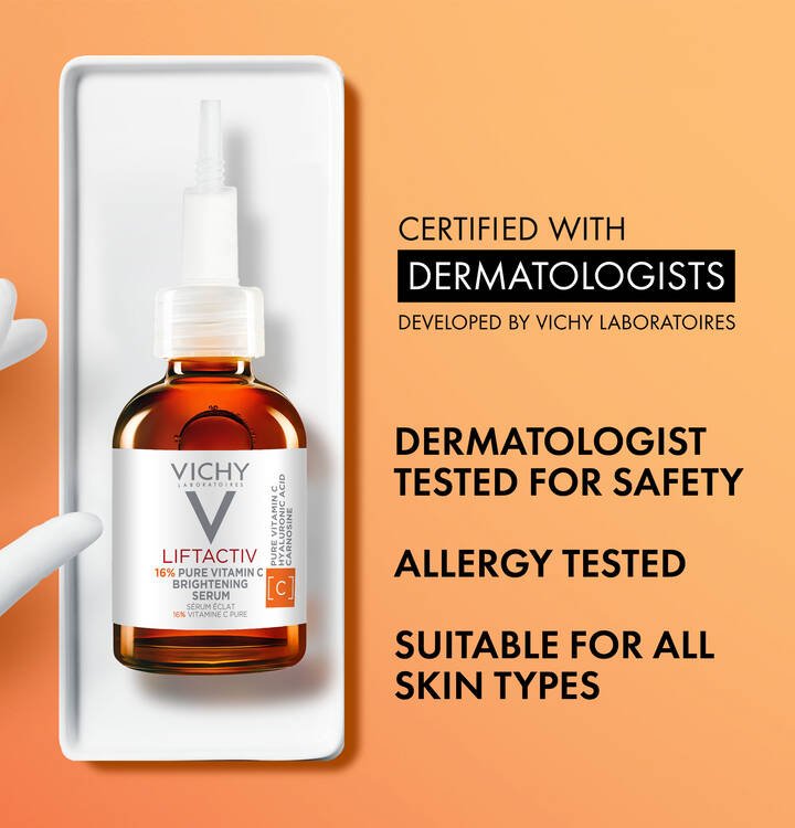 Discover LiftActiv’s new 16% Pure Vitamin C Brightening Serum. A serum formulated with our highest concentration of 16% Pure Vitamin C and now formulated without any drying alcohols. This lightweight, quick-absorbing formula is also fragrance-free, allergy-tested, and certified by dermatologists.