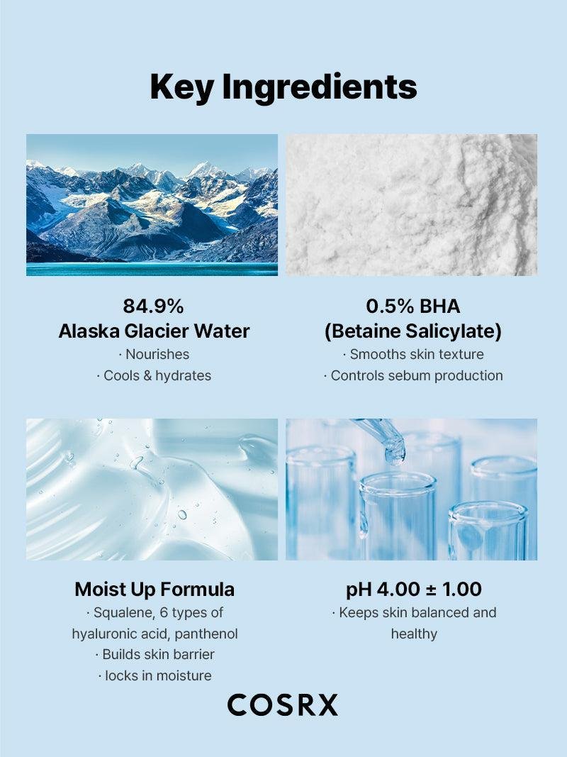 Alaska glacier water fills your skin with moisture, Moisture toning pads with BHA and PHA to gently care your skin texture.
