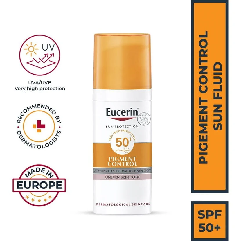With patented Thiamidol, the Eucerin Sun Pigment Control Fluid SPF 50+ reduces dark spots, prevents re-appearance and ensures a light texture. Dermatologically proven and suitable for all skin types, 97% of users report a more even complexion.