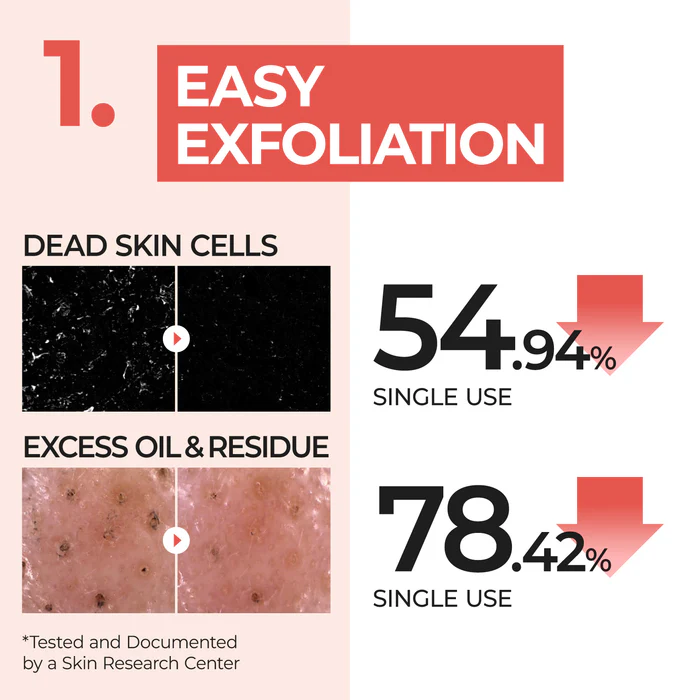 [CLINICALLY TESTED] Proven to reduce dead skin cells by 54.94% and excess oil & residue by 78.42% in just 2 weeks. Pore area is reduced by 47.80%, and pore volume by 52.27%. Skin Irritation Test completed, making it safe for sensitive skin.